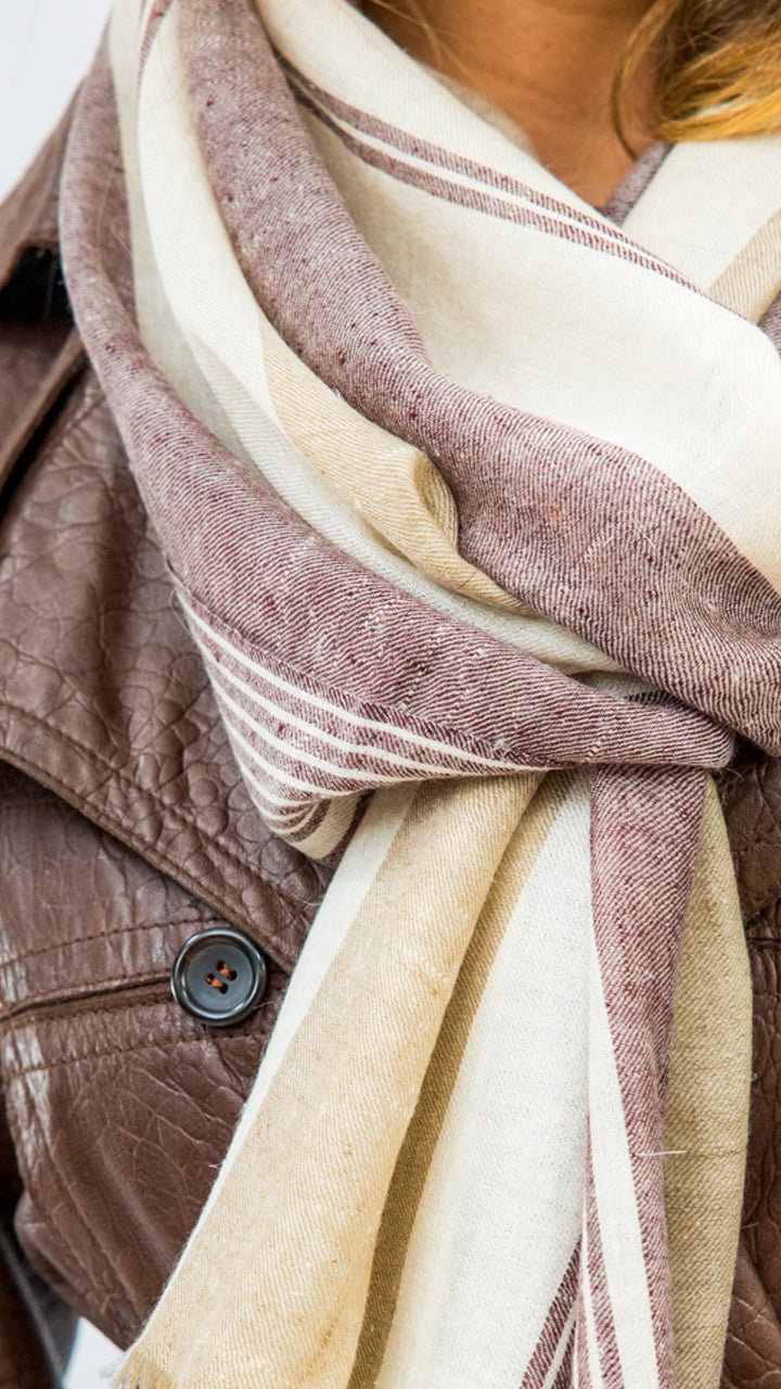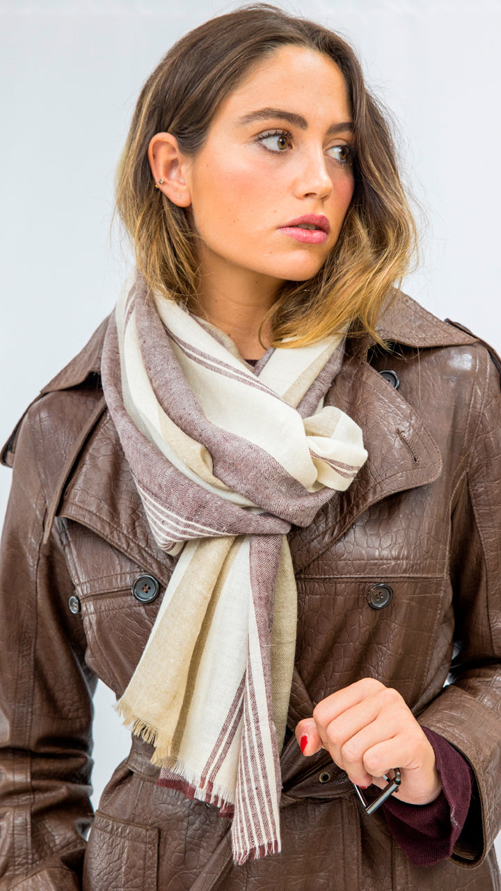 Pashmina stripes in beige and white, intertwined with the elegance of a timeless dance.