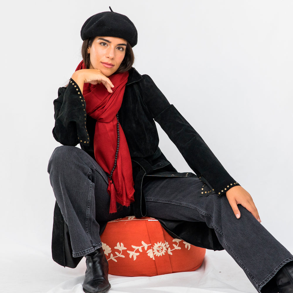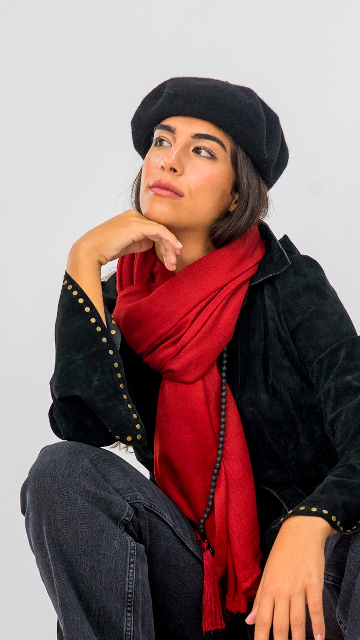 Like ripe cherries, this red scarf ignites passion and vitality on any occasion.